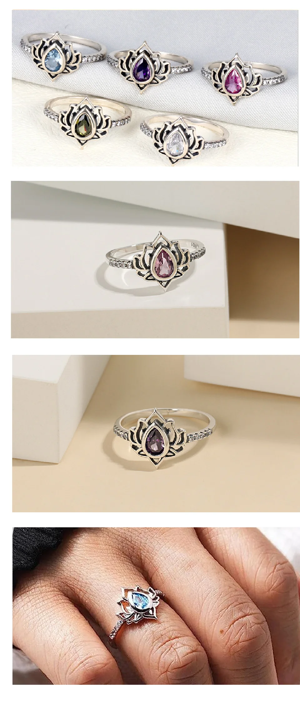 At the centre of the lotus sits a sparkling crystal stone that reflects clarity, harmony, and positive energy. Available in a variety of crystal colours, each variation carries its own unique energy while maintaining the ring’s core intention of growth, balance, and spiritual connection.